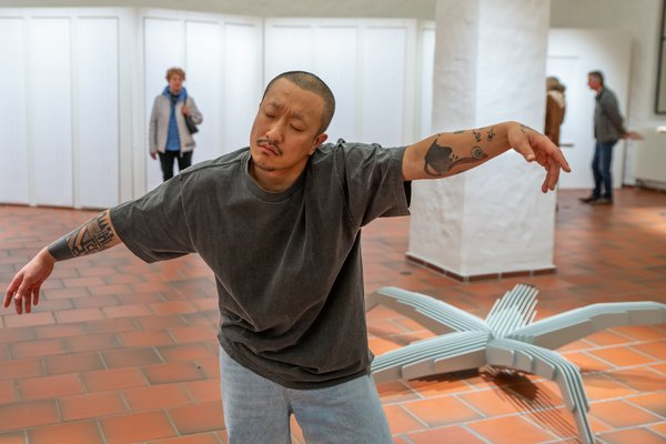 "Movement (of) In-Between Forms" opens a space where movement, interaction, and material presence are intricately interwoven. Touch is not only allowed here but is an integral part of the concept.